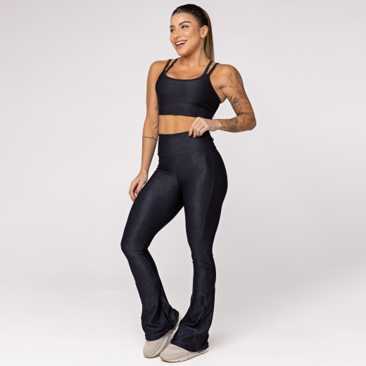 Top Fitness Canelado com Alças Duplas Preto Flux